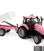 Auto Kids Globe tractor roze met aanhanger. Deze prachtige roze tractor zoekt een bestuurder. Wil jij de boer een handje helpen? Je kunt nu ook in het donker helpen met de laatste klusjes, de tractor is namelijk voorzien van licht!! Metalen Tractor in de mooie kleur roze met gierwagen en dus met licht en geluid. 25 cm.